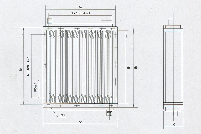 SRL型散热器按顺气流方向分为二排交叉排列与三排交叉排列两种型式。